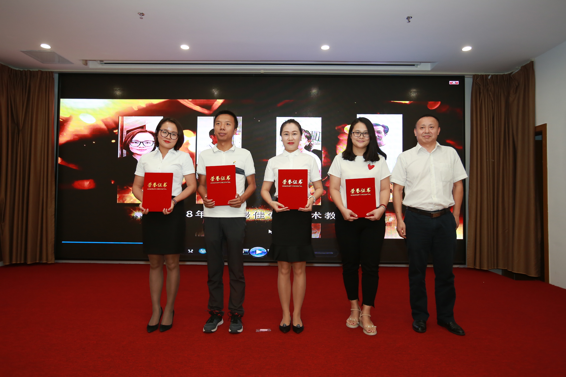▲公司黨委委員、總經(jīng)理助理劉凱為受表彰的“最佳專業(yè)技術教員”頒發(fā)證書,獲獎個人分別為:人力資源服務中心陳乃東、機電公司李展志、機電公司黃安理、白鷺健康公司韓娟。