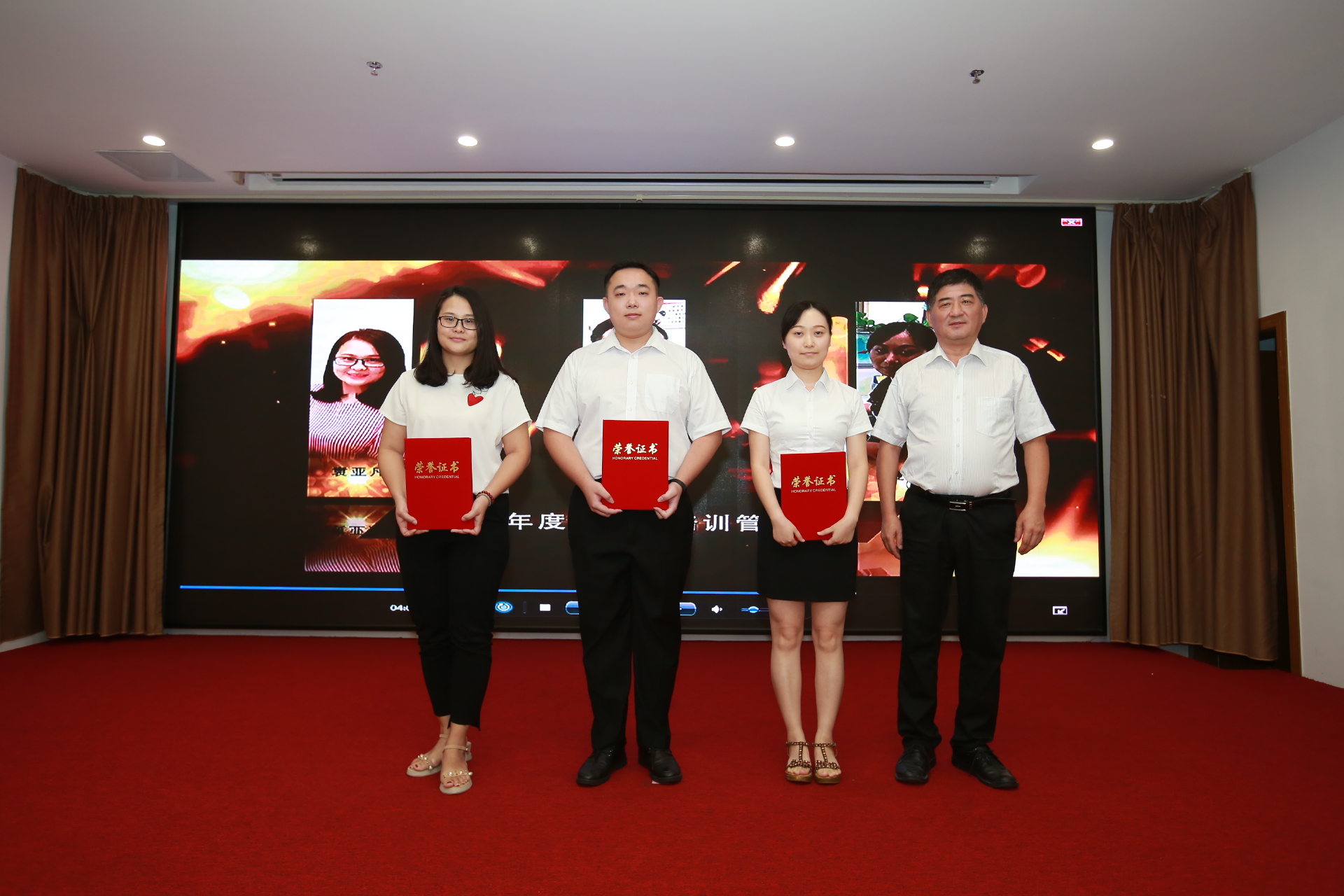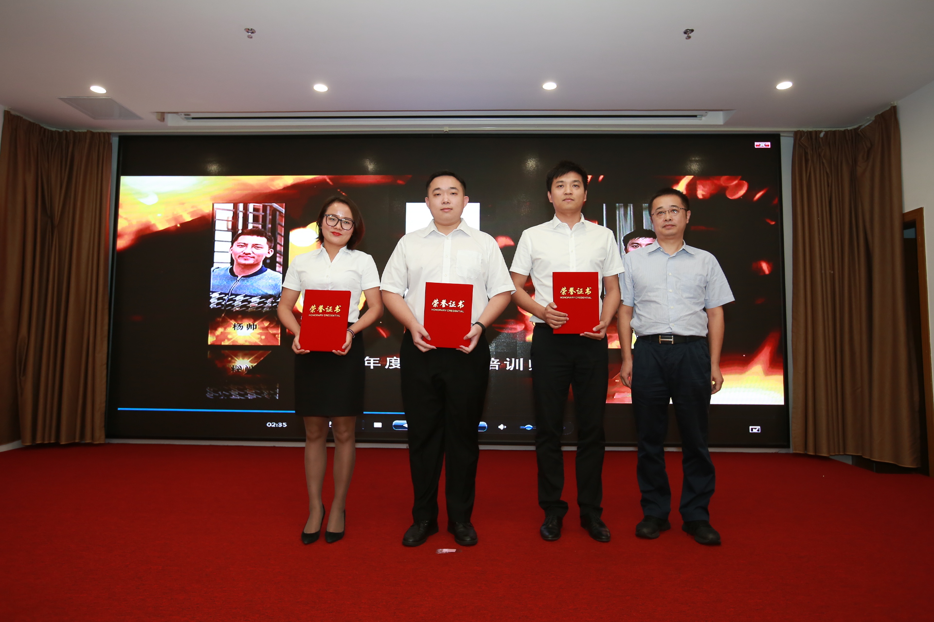 ▲公司黨委委員、副總經(jīng)理劉清明為受表彰的“最佳培訓管理員”頒發(fā)證書,獲獎個人分別為:機電公司袁亞凡、臺山分公司周健華、白鷺健康公司夏琦。