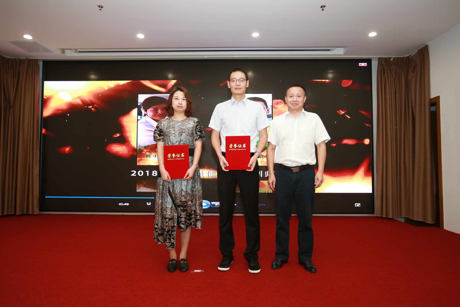 ▲公司黨委委員、總經(jīng)理助理劉凱為受表彰的“最佳管理內(nèi)訓師”頒發(fā)證書,獲獎個人分別為:惠州分公司馮振前、蒼南分公司陳小麗。