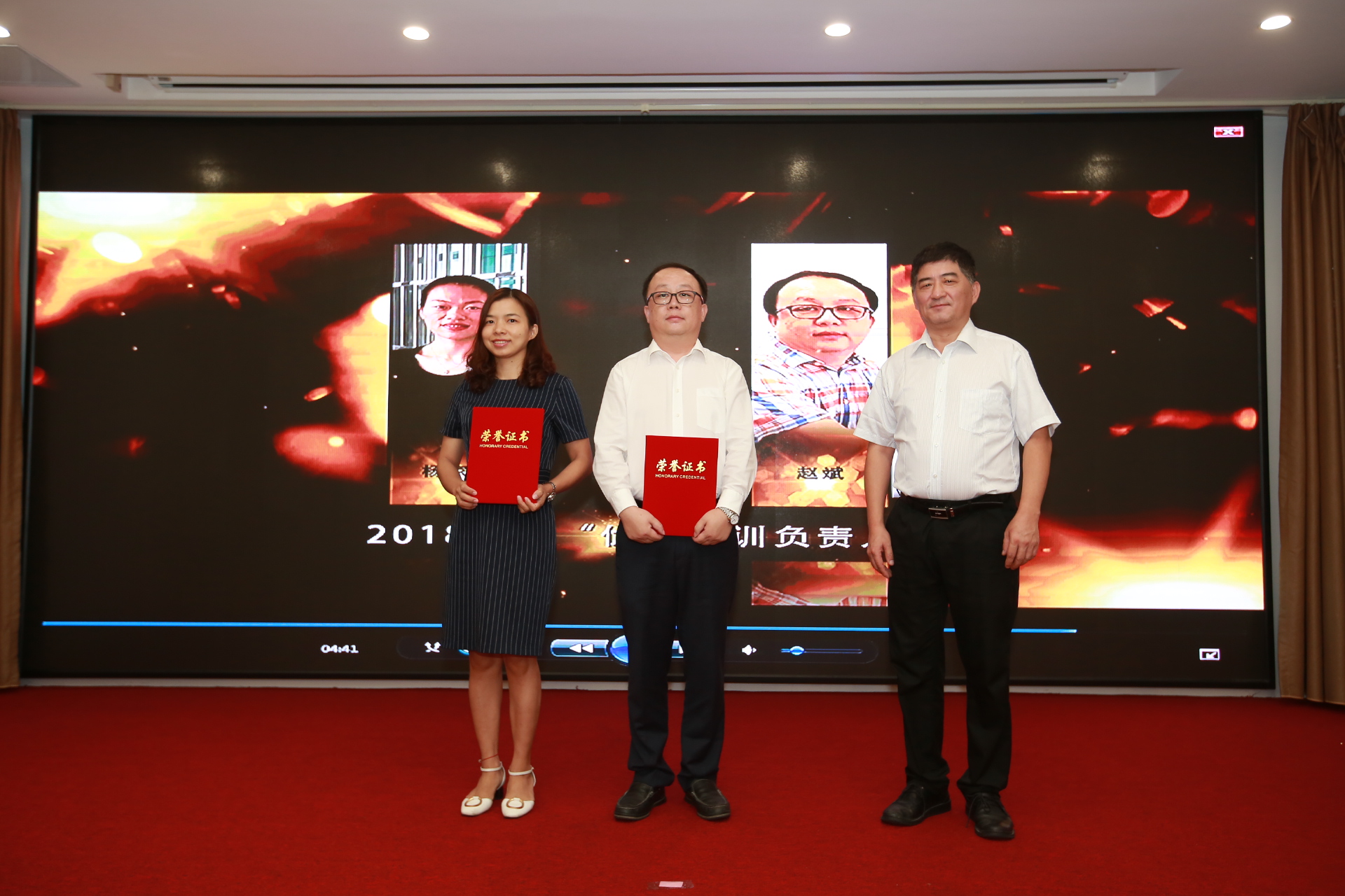 ▲公司黨委委員、總法律顧問楊光玉為受表彰的“最佳培訓課程”代表頒發(fā)證書,獲獎課程分別為:《防御性駕駛培訓》(基地事業(yè)部交通管理中心)、《公關接待禮儀培訓》(人力資源服務中心,白鷺健康公司)。
