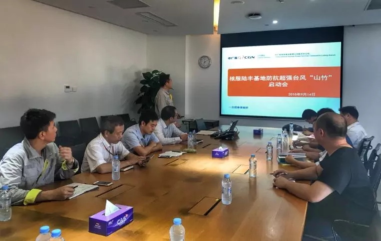 ▲臺風(fēng)登陸前夕,中廣核服各單位召開防抗超強(qiáng)臺風(fēng)“山竹”部署會,做好各項應(yīng)急計劃。
