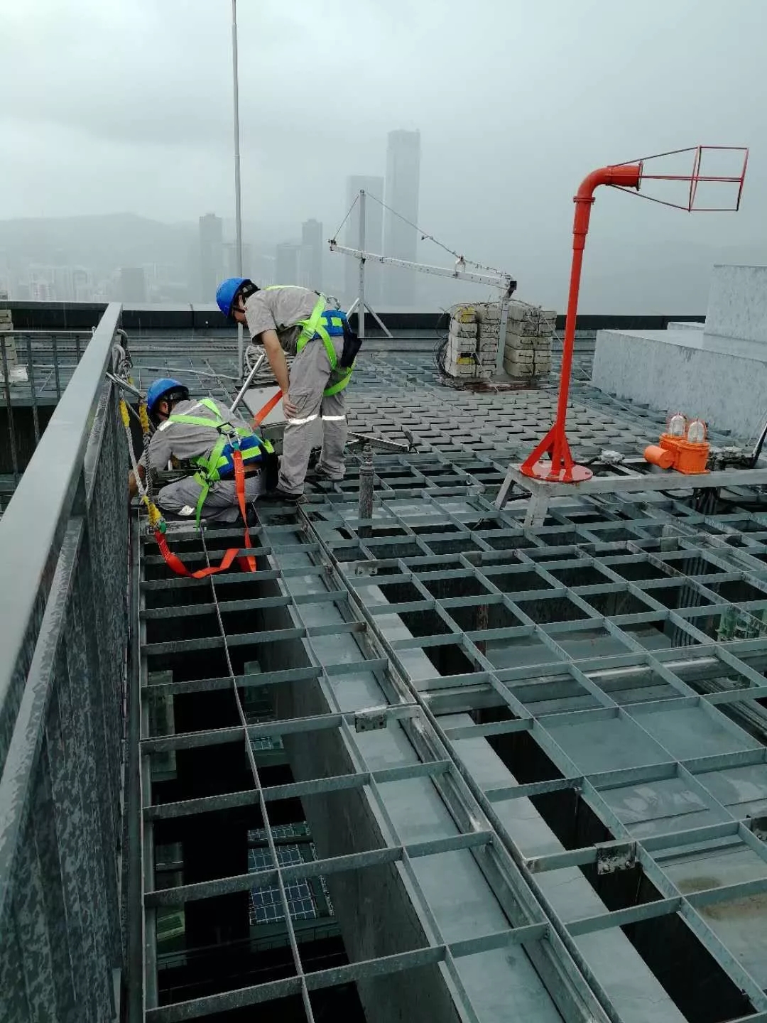 ▲臺風(fēng)登陸前夕,福田分公司物業(yè)員工認(rèn)真做好高空雜物清理,防止雜物墜落。