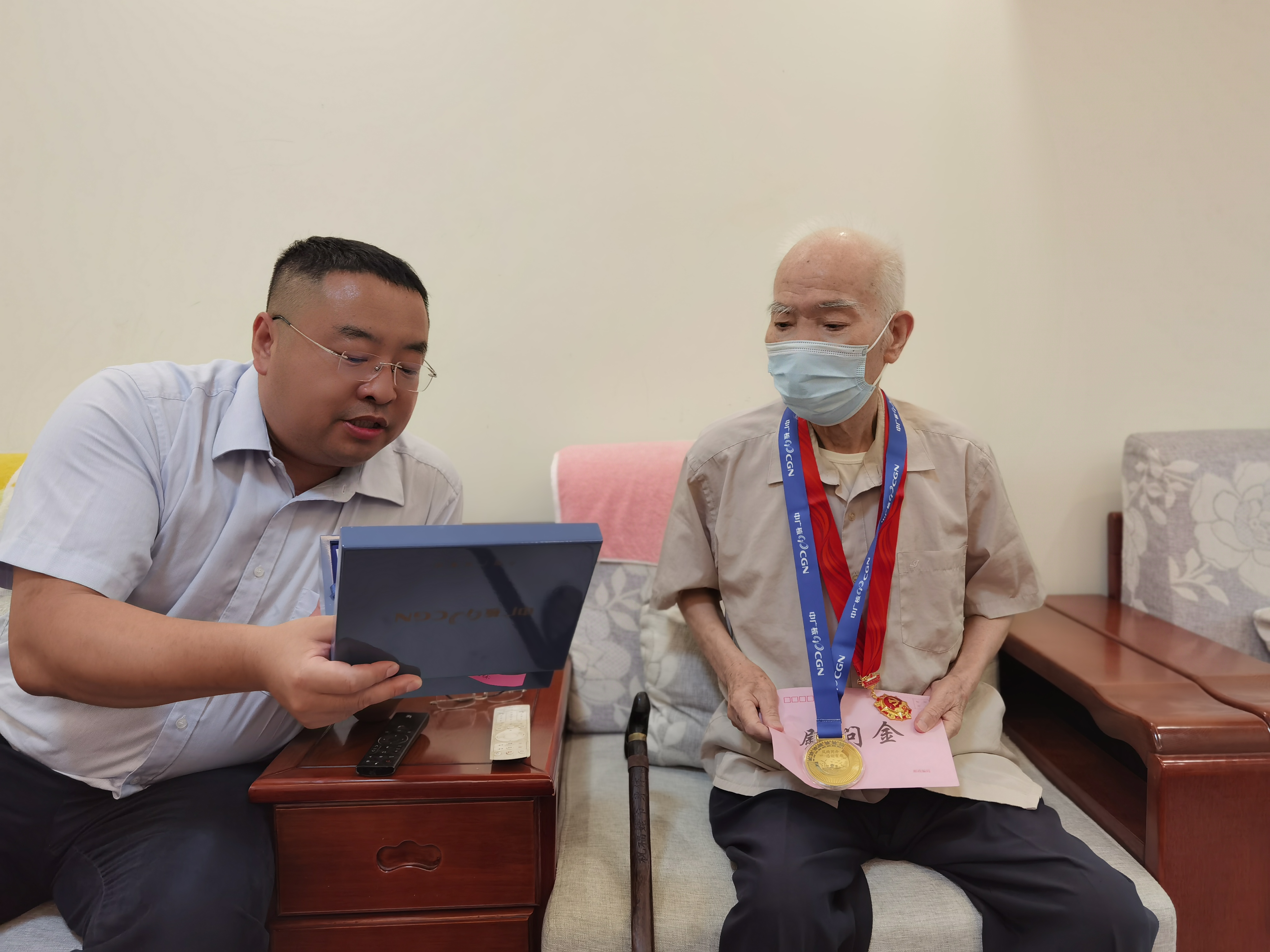 “收到黨組織的關心,特別高興和自豪,雖然身體活動不便,也一定要站起來”,87歲的老黨員連環(huán)雄精神抖擻、爽朗的話語感染著在場的人。他同時也是在一個紅色大家庭中,家里近親中有10名超過50年黨齡的老黨員,早年進入東江縱隊,參加淮海戰(zhàn)役、渡江戰(zhàn)役,解放上海、舟山等戰(zhàn)斗,后到蘇聯(lián)留學,歸國后參與秦山核電站、大亞灣核電站建設,榮獲核工業(yè)部頒發(fā)的“長期從事核工業(yè)建設榮譽證書”。王海龍為他佩戴上“光榮在黨50年”紀念章,并親切詢問他身體狀況。他表示,紅色故事感染著人、激勵著人,老黨員的貢獻,黨組織永遠不會忘記,一定要大力發(fā)揚他們身上的紅色傳統(tǒng),傳承紅色基因。