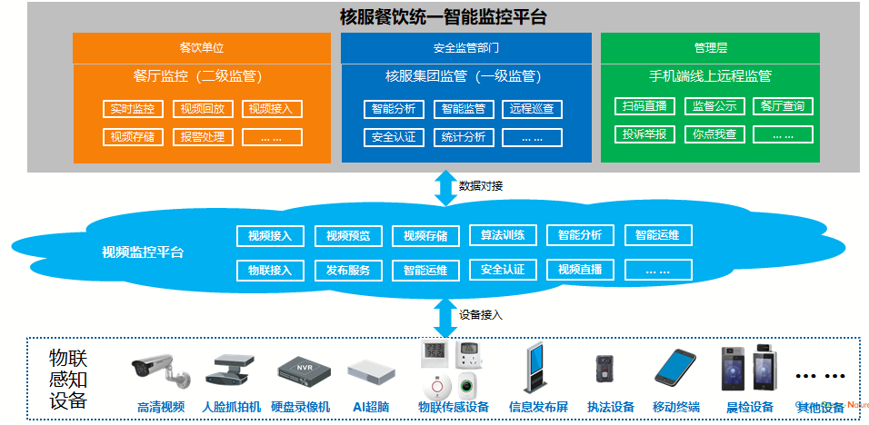 該系統項目主要圍繞規范餐廚操作、食品加工過程安全及安質環高風險作業場地管理需求,并結合2021年安質環考核高目標要求,按照整體規劃、分步實施的策略推進。2021年首批完成中廣核大廈、大亞灣核電基地3個試點餐廳項目建設,后續可結合業務使用需求,逐步拓展至交通、物業、園區綜合服務等業務,最終實現集中視頻監控的全面統一管理。
