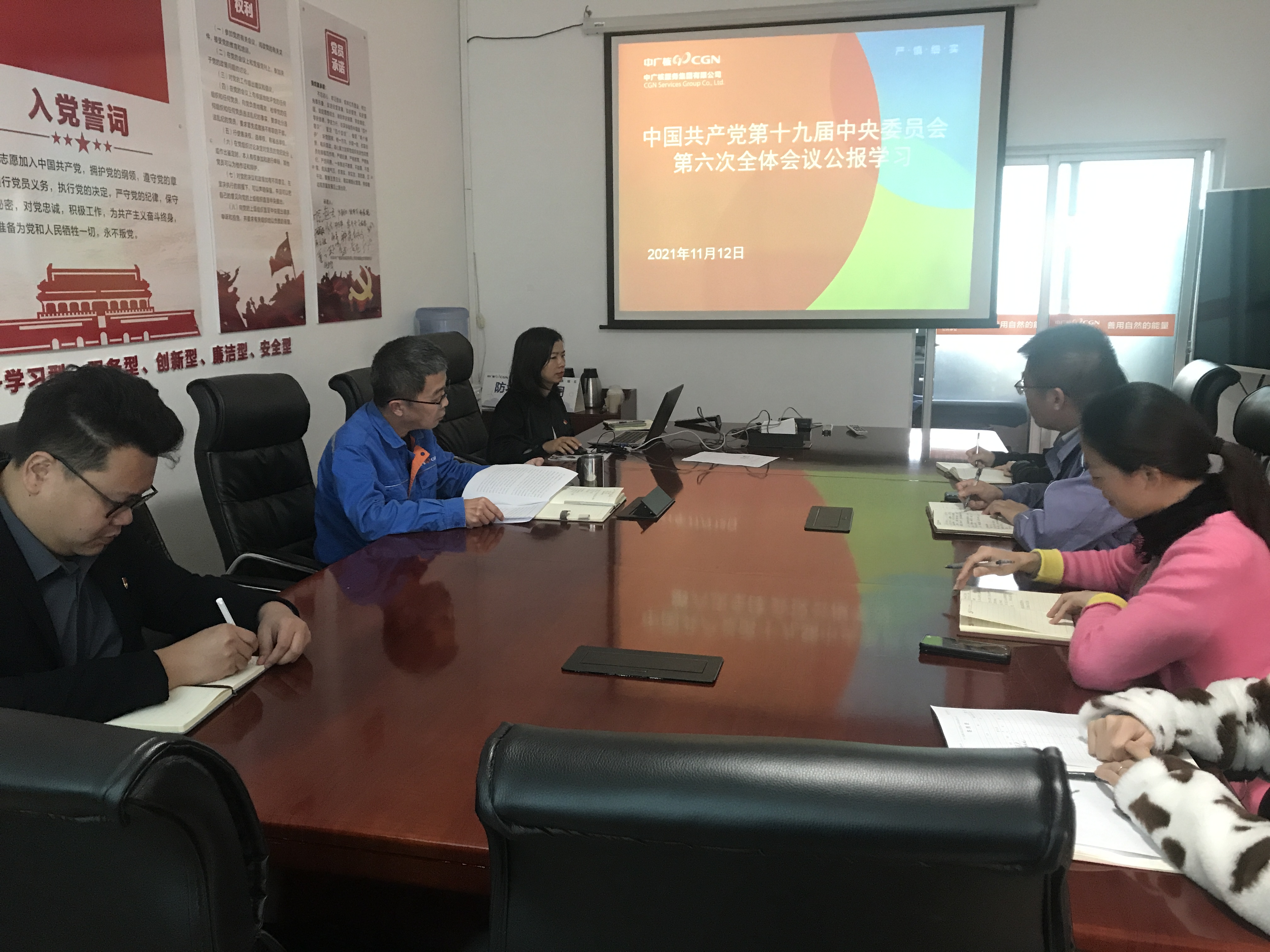 按照集團公司黨委的統(tǒng)一部署,近日,中廣核服黨委高度重視,召開黨委理論學習中心組學習(擴大)會,集體學習貫徹落實黨的十九屆六中全會精神。同時,統(tǒng)籌推進,中廣核服所屬各單位認真組織,掀起了學習宣貫黨的十九屆六中全會精神熱潮,學懂悟透全會精神,推動完成全年經(jīng)營發(fā)展任務,奮力投身“十四五”新征程。