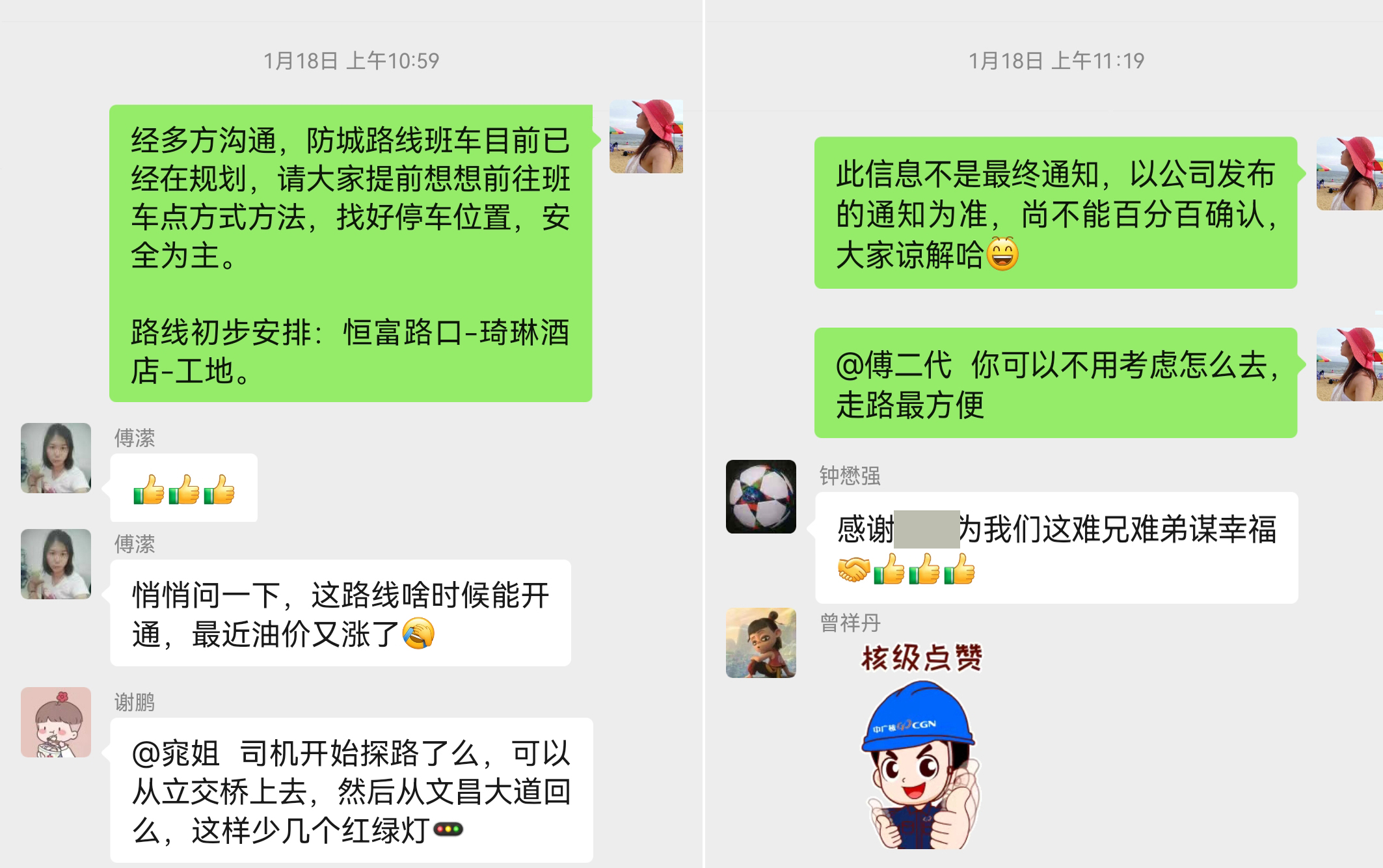 防城區(qū)員工前往班車點時間長、難度大的問題