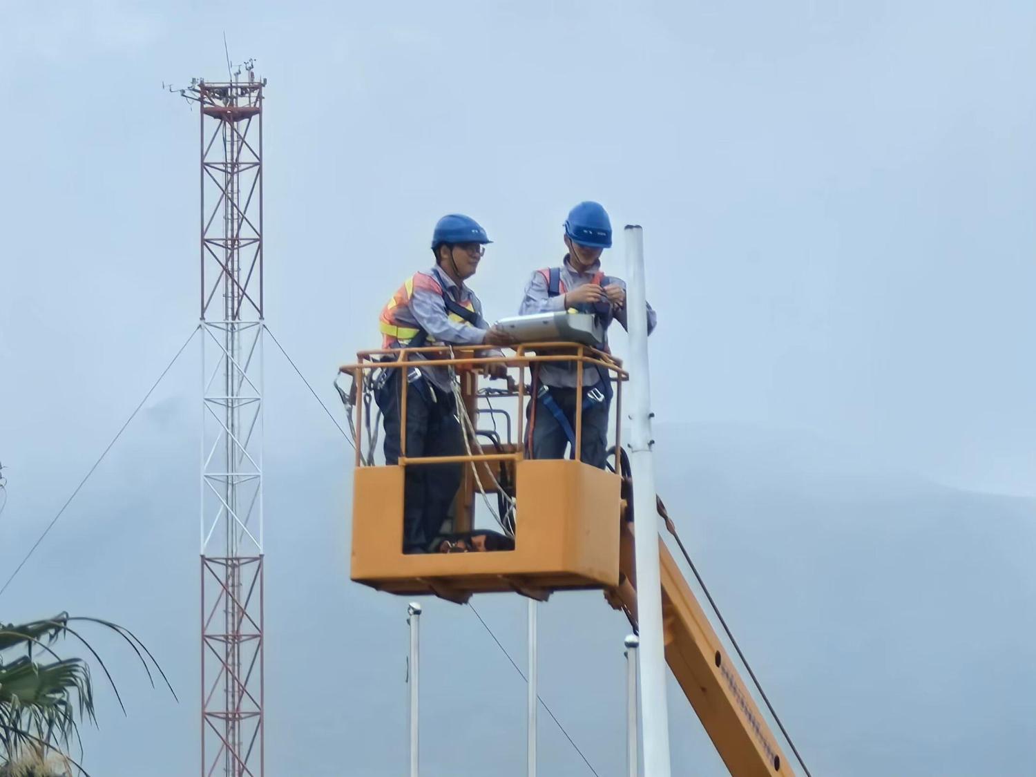 為確保路燈設備安全穩定,大亞灣班組的鄔偉明和歐陽海飛正利用高空作業車檢修路燈線路。他們仔細檢查每一盞路燈,排查故障點,并及時對出現故障、照明效果不佳的路燈及破損的線路進行維修更換,進一步提高大亞灣主次干道路燈的亮燈率和完好率,確保基地道路照明設施安全運行,方便職工出行。